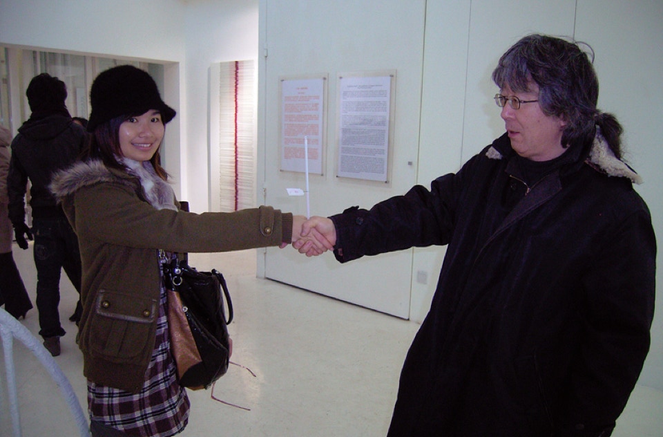 方振寧企画による北京での2度目の個展になる。北京郊外にある798芸術区に有った喜画廊での開催となり、北京に保管してある作品と日本で制作した新作を含む展示となった。会期中に、中国の人々とのコミュニケーションの不足を感じ以前から考えていた握手パフォーマンスを始めた。